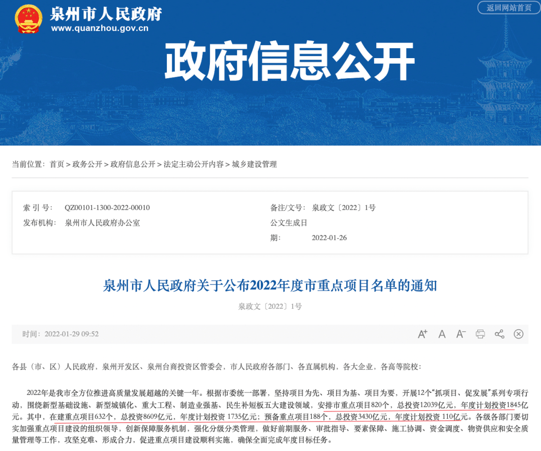 原标题:最新公布!2022年度泉州市重点项目出炉!关乎东海/城东/台商/江南/北峰等多个新区…
